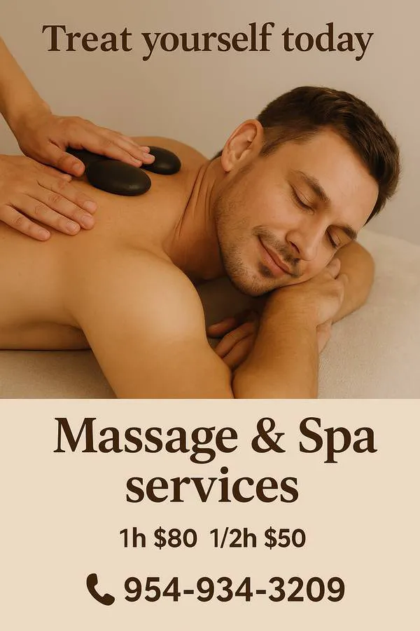 Your Stress Will melt away plus, you'll look and fell great.😍 Get a relaxing bodywork your body needed and deserves 1 h only $80 , 1/2 h $50 Also hot stones, stretchings , and lymphatic drainage post surgery. Wood treatment , body sculpting, with 2 therapist, 4 hands treatment , Body scrubs, body shampoo, body-wraps, free 🚿 hot shower available Skin Care treatments.😀 Male grooming: full body w