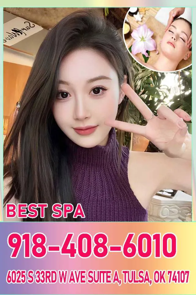 🍒🍒Best Spa 🍒🍒918-408-6010 🍒🍒6025 S 33rd W Ave Suite A, Tulsa, OK 74107 🍒🍒Mon-Sun: 8:30am-10:00pm 🍡🍡🍡🍡🍡🍡🍡🍡🍡🍡🍡🍡🍡🍡🍡🍡🍡🍡 ✨❣️This is the best place for you to relax, professional attitude, enthusiastic attitude. ✨❣️Our beautiful female masseuses are very enthusiastic and exotic. ✨❣️Experienced...Experience the most authentic and perfect massage service ✨❣️It is very effective for treating waist and leg pain, deeply massage your uncomfortable parts, and the effect is obvious! ✨❣️We are famous for our high-quality massage technology and are well received by customers. ⭐❣️♥️❤️Best service and sweet smile❤️♥️❣️⭐ ⭐❣️♥️❤️Excellent technology and quality service❤️♥️❣️⭐ 💯The environment is clean and comfortable, warm and elegant, and the service is first-class. ⭐ 💯We are always ready to provide you with the best massage, please call us directly
